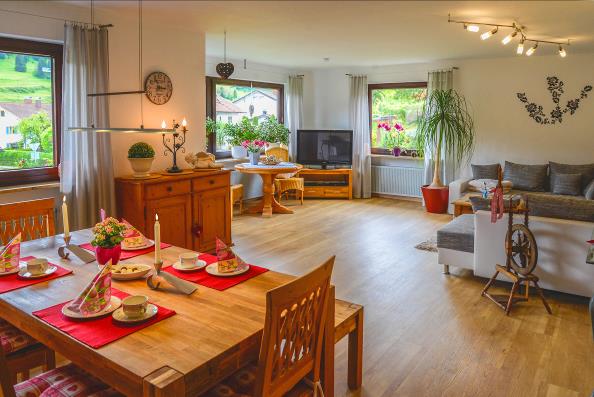 Wohnung Rosi: Auf 110 m² finden sie eine komplett eingerichtete Küche, mit Spülmaschine, Backofen, Microwelle und Gefrierschrank. Zwei Schlafzimmer und ein Gästezimmer bieten Platz für alle. ob Großeltern, Kinder, Enkel oder Freunde. Fühlen sie sich wie zuhause. |